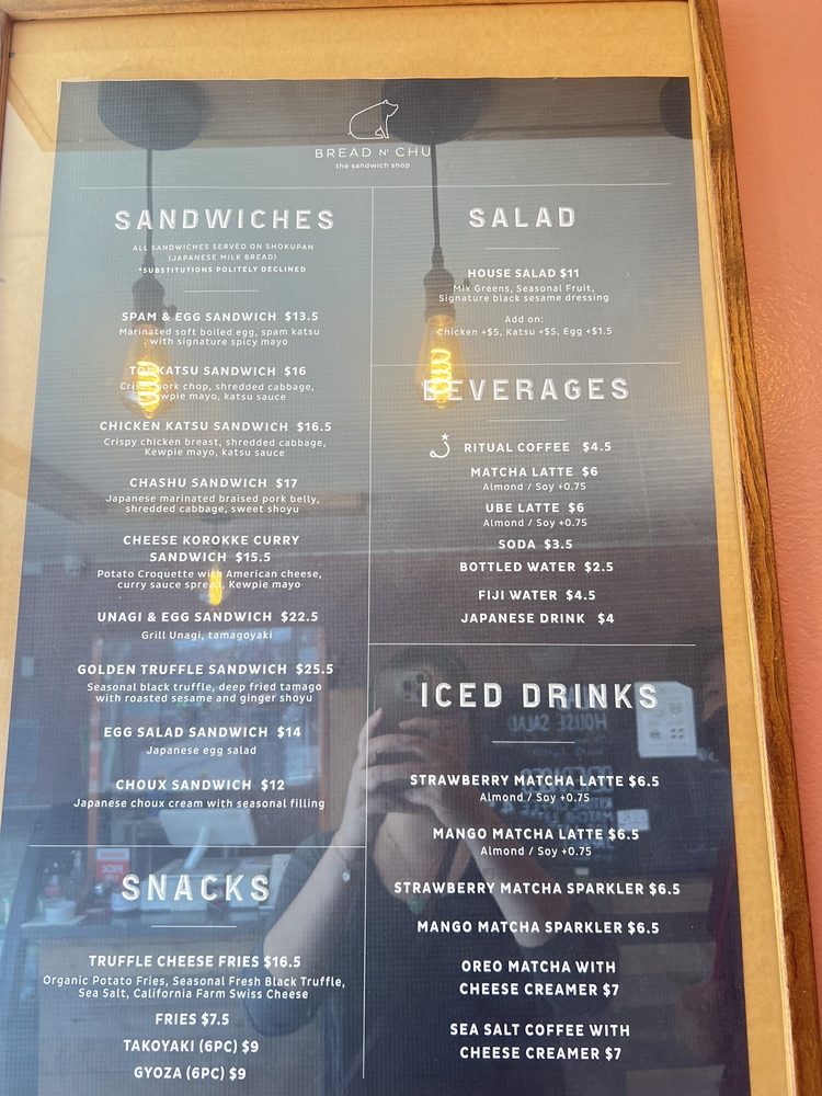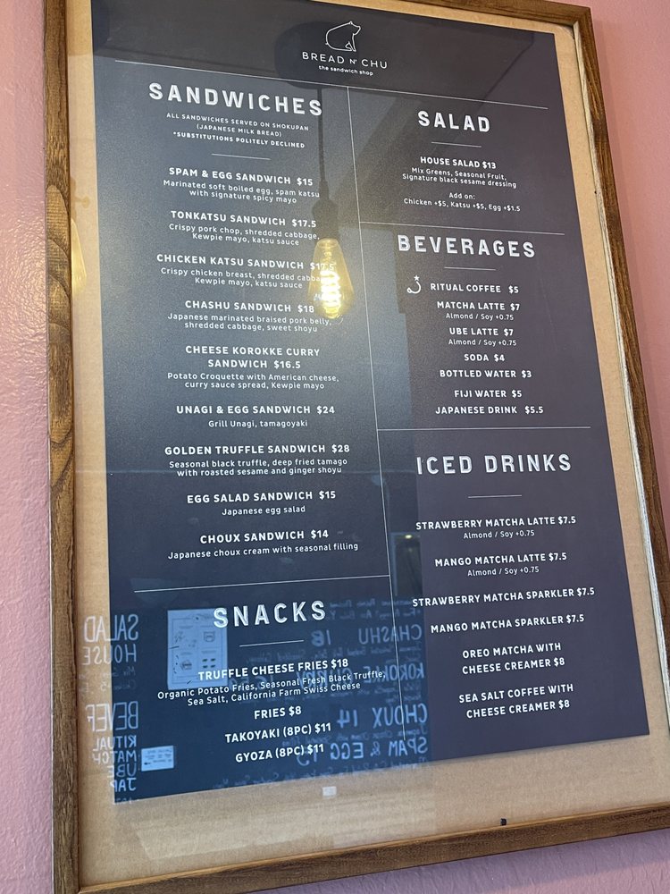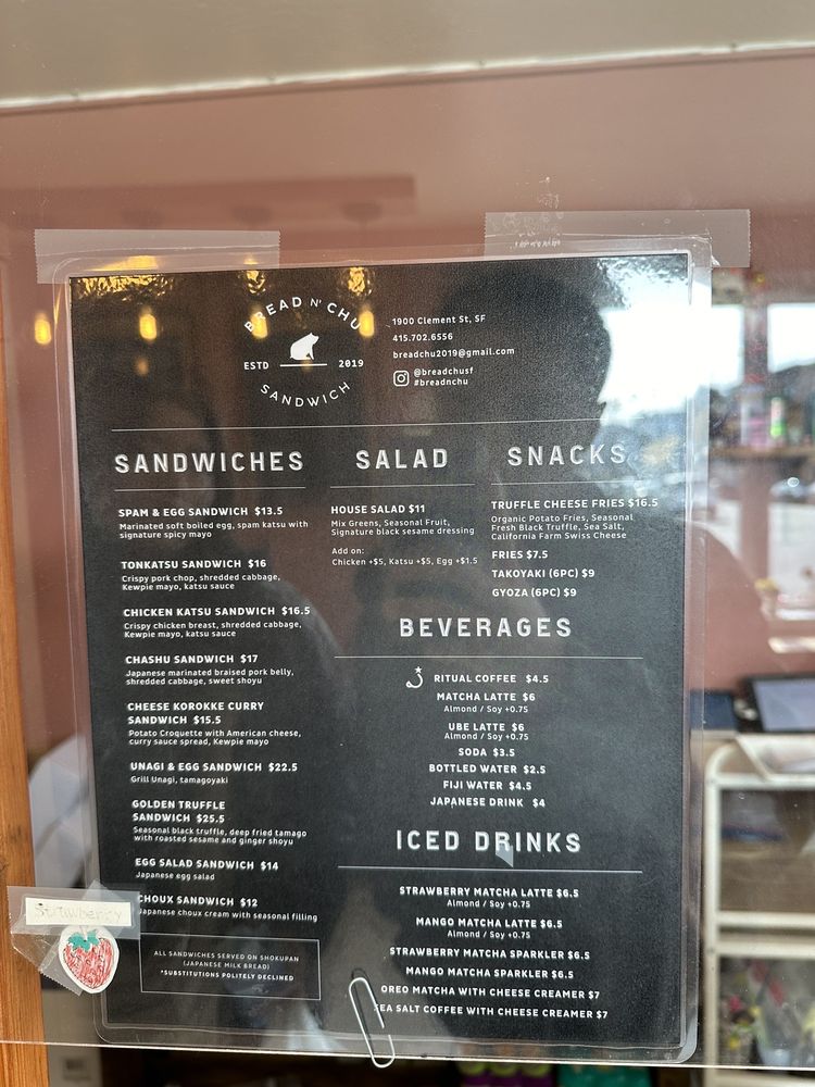 Bread N’ Chu, located in San Francisco, is a must-visit sando shop offering a variety of unique sandwiches. Their Chicken Katsu Sando stands out with the perfect chicken to bread ratio and delicious sauce. The Golden Truffle Sandwich, though a bit pricier, is a warm and flavorful option recommended by the staff. For a lighter choice, try the Strawberry Choux, a perfect blend of creaminess and sweetness.